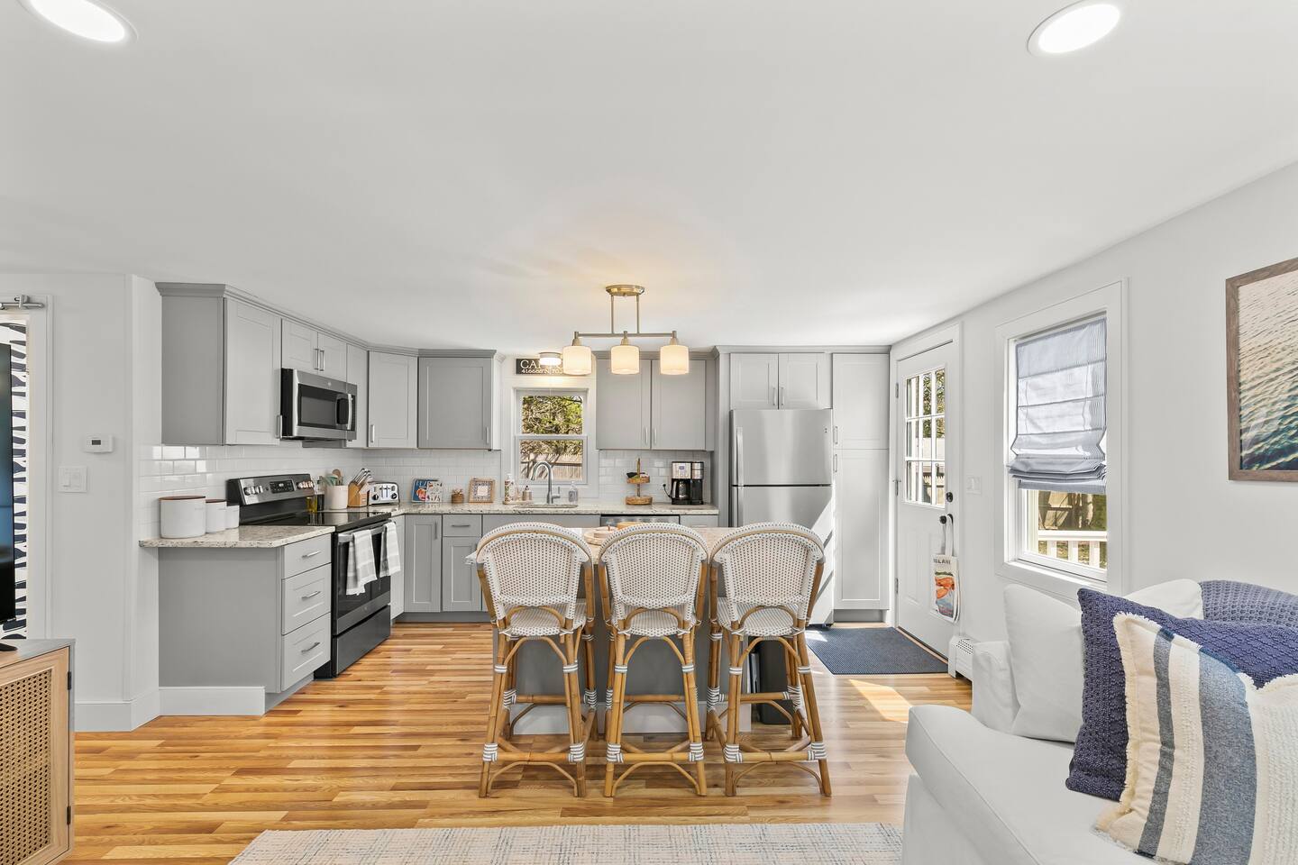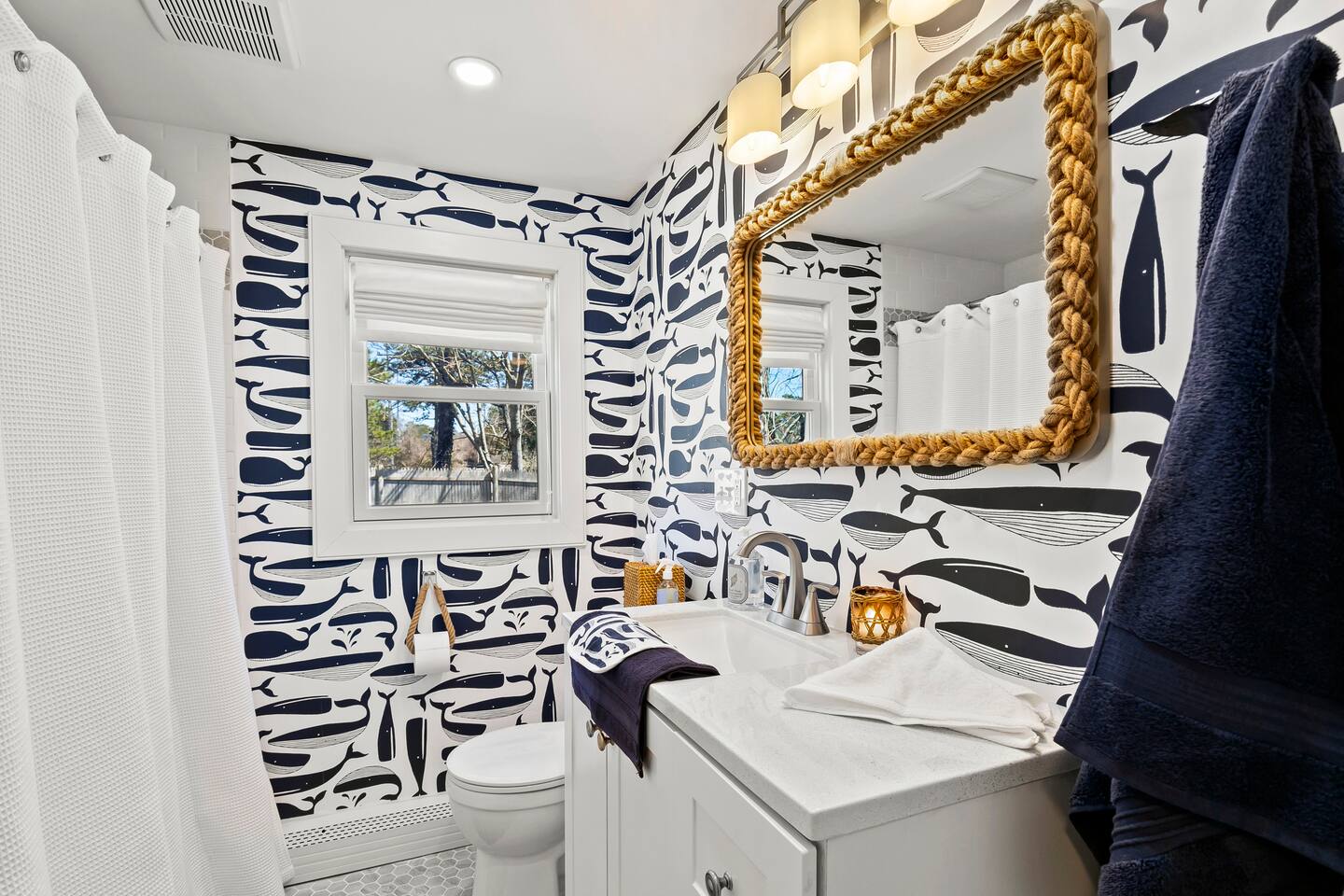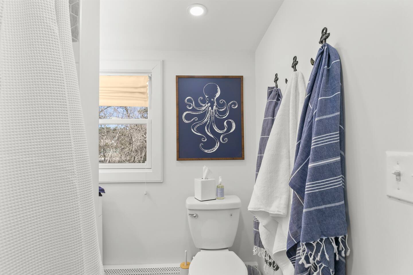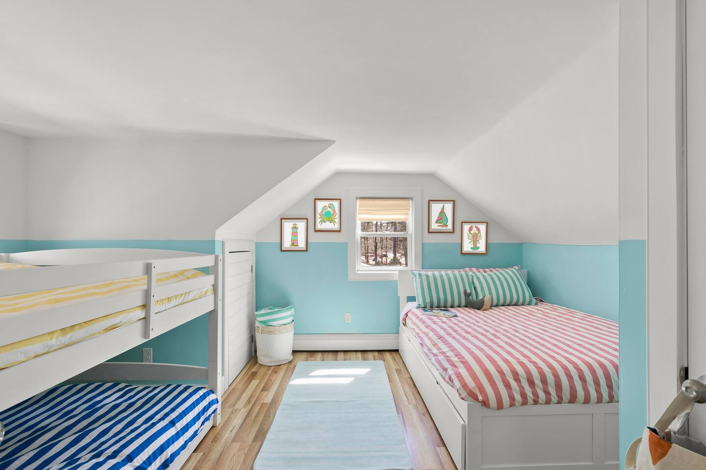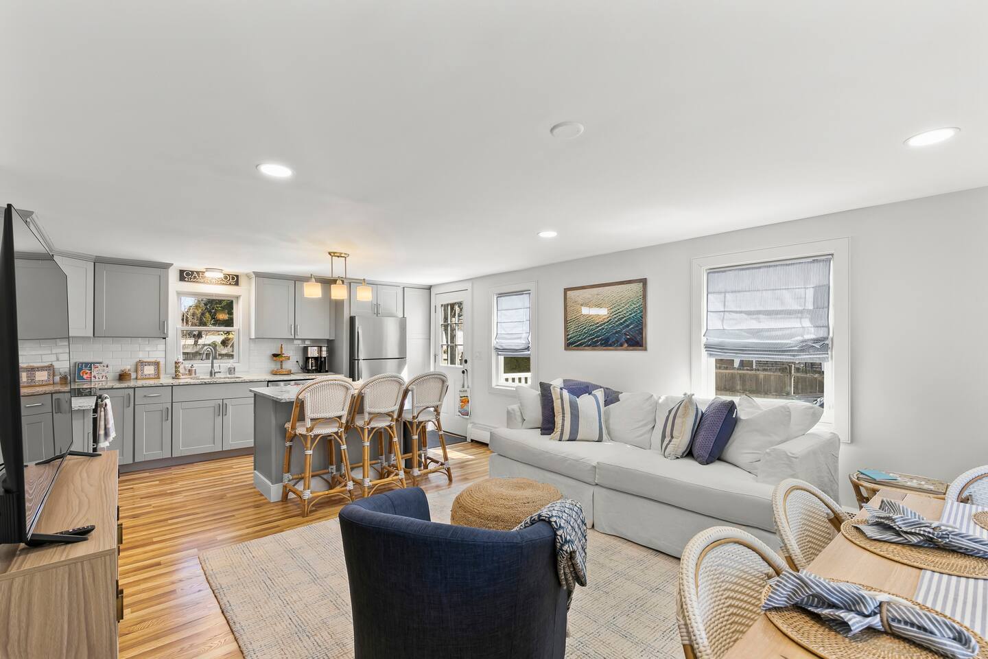 MAIN FLOOR The main floor of our homey Cape cottage consists of an open living room/kitchen, two bedrooms, and one full bathroom. The living room is centered by a brand new extra comfy couch + a 65” Roku 4k TV. We have Netflix and Sling subscriptions all set up for you, you won’t even need to sign in :) The media console under the TV holds a treasure chest of board games & card games to keep the whole family entertained, as well as a PS5 because, well, why not (Parents - Let me know if you want us to hide this). The living room & all bedrooms have new air conditioning. In the kitchen, you’ll find a full assortment of cookware, spices, staple ingredients, & everything you need to whip up a home-cooked meal. Help yourself to snacks and local coffee from Mary Lou’s & Cape Cod Coffee (who happens to have fantastic pizza). Everything is brand new - Fridge, stove, toaster, coffee maker, & blender included. In our two main floor bedrooms, you will find peace and serenity to unwind from work, enjoy quality time with the family, or read a good book in your own personal reading nook. The room on the left comes with a 55” Roku 4k TV for those who prefer sports or Tarantino to Hemingway. There are 2 high chairs and 2 pack and plays in the closet if you have toddlers. Both rooms have Queen memory foam mattresses, and they are incredibly comfortable. Between the kitchen and bedrooms, you will find our first full bath. Let us know what you think of the whales. SECOND FLOOR On the second floor, you will find the master bedroom, another full bath (no whales this time), and a 4th bedroom equally well-suited for adults, teens, or young ones. The master bedroom comes equipped with a Queen memory foam mattress and a corner-mounted 50” Roku 4k TV (not yet shown in pictures), as well as an oversized lounge chair and a desk setup (we do have max speed wifi throughout the house, in case you need it). There is something grand feeling about this room; We absolutely love it and hope you will too. Between the master and the fourth bedroom is our second full bath. Last, but not least, the final bedroom contains a Full over Full bunk bed as well as a separate Full bed with a Twin trundle. This room is perfect for kids, or friends of all ages who want to stay up late cracking jokes and keeping each other company. FINISHED BASEMENT New for 2026 season, we’ve added a finished basement with a hangout area, complete with a pullout couch, as well as a desk / work station. OUTDOOR SPACE The spacious backyard has an outdoor dining table that seats 10, along with a separate lounge area built around a firepit. Enjoy our outdoor shower to wash off after days at the beach, and show off your grillmaster skills with our massive six-burner propane grill. We also have a shed with beach chairs, outdoor games, and more. Enjoy!