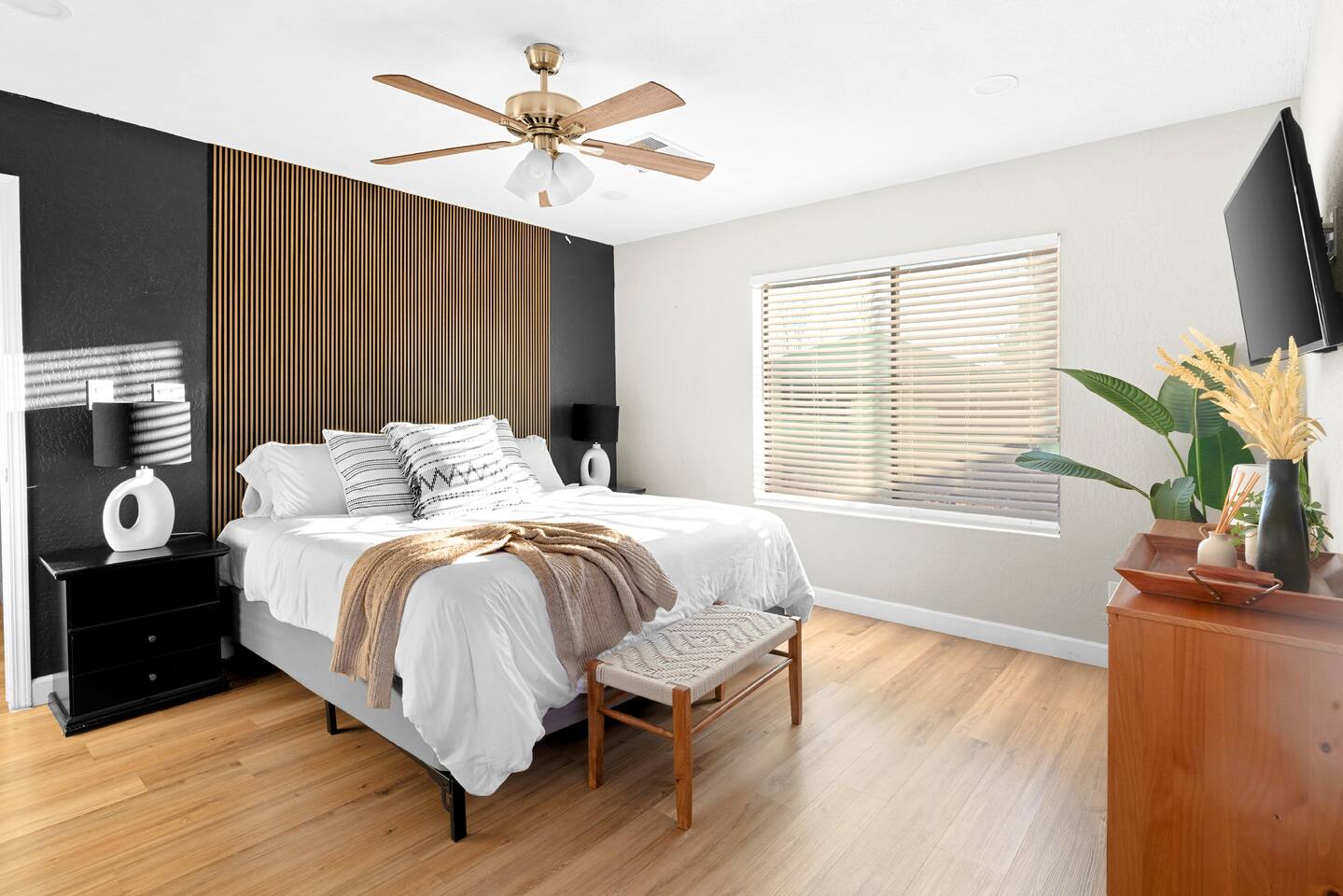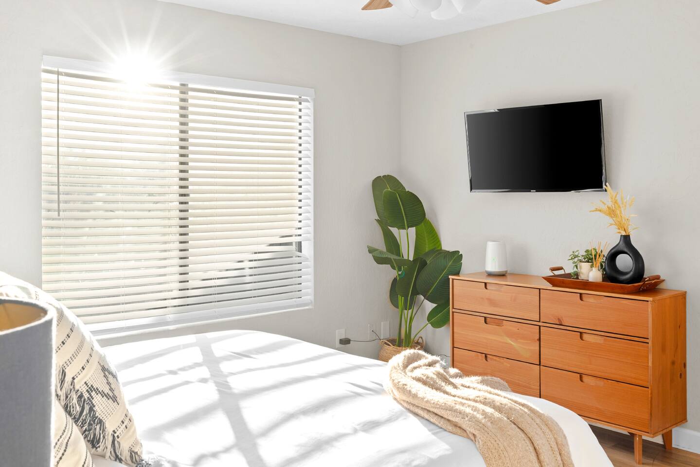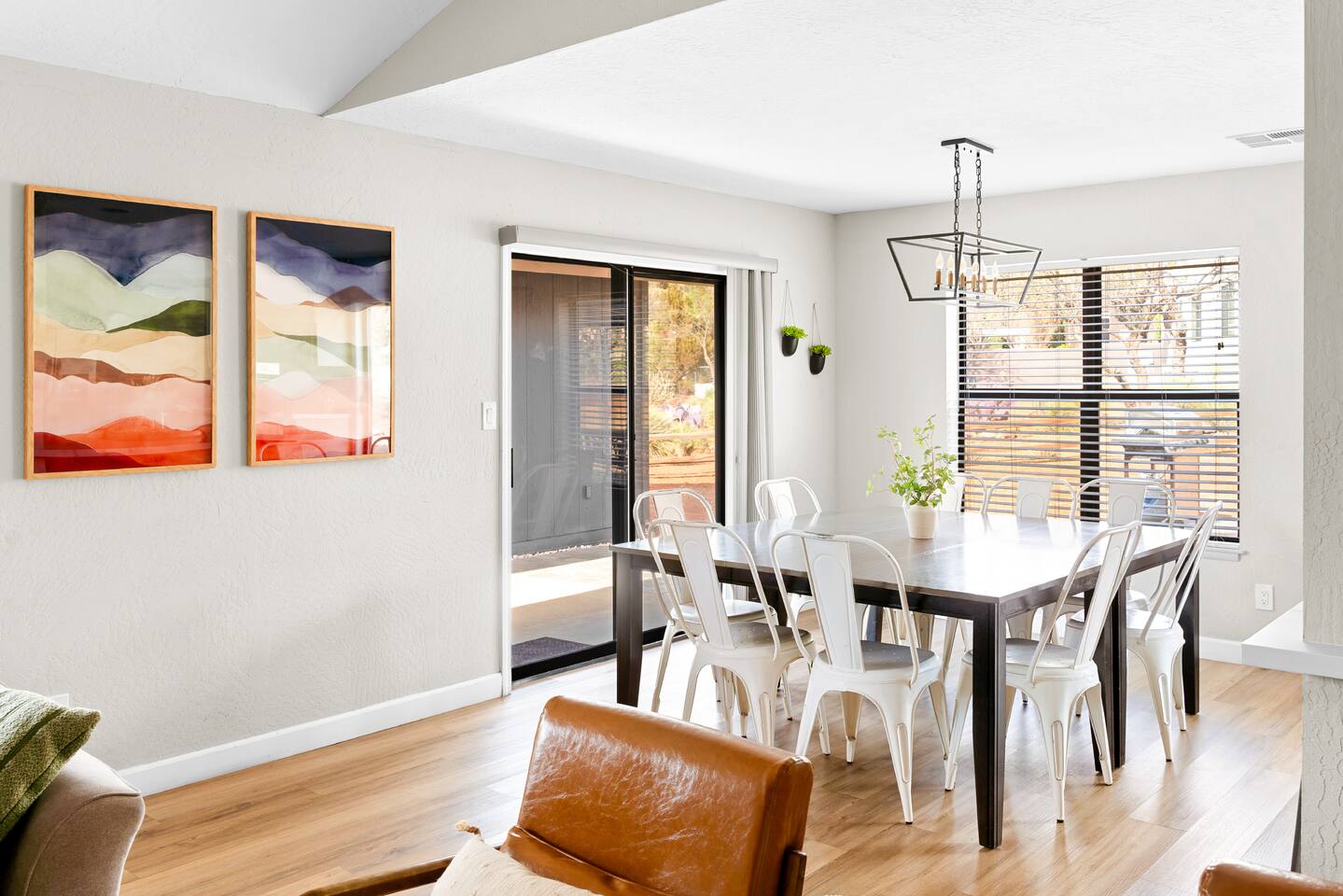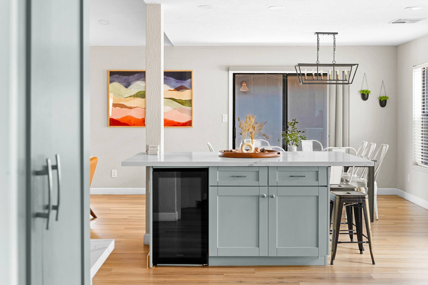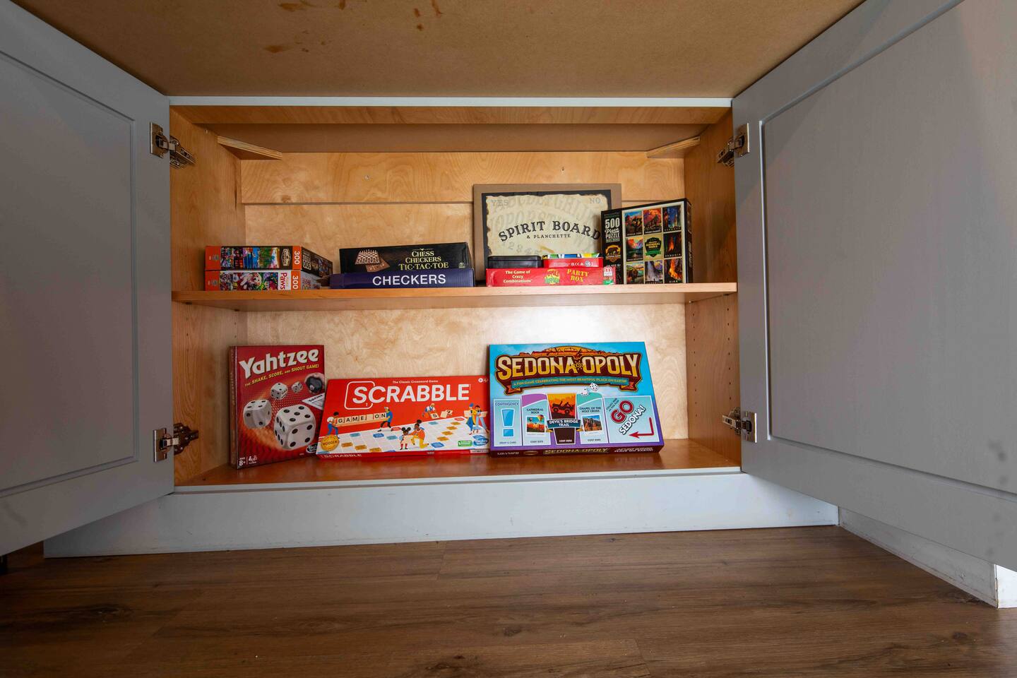 Nestled amidst the breathtaking red rock landscapes, our recently renovated Sedona home is designed for those seeking a refined yet relaxed getaway. Thoughtfully curated with stylish details and modern comforts, this is more than just a place to stay—it’s a space to gather, unwind, and create unforgettable memories. Step into the living room, a sprawling, open-concept space where comfort meets sophistication. The 65-inch HD Smart TV mounted from the ceiling is perfect for movie nights, while the ample seating invites you to sink in and relax. Kids will delight in discovering a hidden trove of board games beneath the kitchen island, including the ever-popular SedonaOpoly. Whether you’re stretching out on an Alo yoga mat or pouring a glass of wine from the island’s built-in wine fridge, every detail here is designed for indulgence. The dining area is a place for connection, where a spacious table comfortably seats ten for family-style meals. Additional seating can be found at the oversized kitchen island with its four bar stools, as well as at the outdoor dining table, ensuring there’s room for everyone to gather. The kitchen is a dream for home cooks and entertainers alike, fully stocked with high-quality cookware, cooking essentials, and both indoor and outdoor wine glasses. From a blender for morning smoothies to multiple coffee makers for your perfect morning brew, we’ve thought of everything. Cook well, eat well, live well. Outside, the pool area offers a private oasis framed by stunning views. A fenced, in-ground pool is surrounded by four brand-new lounge chairs, three reclining chairs, and six floats for sun-soaked relaxation. Next to the pool, four Adirondack chairs circle a brand-new Williams Sonoma fire pit, where you can toast marshmallows under the stars. An outdoor sofa and lounge chair complete this tranquil setting, making it the perfect spot for slow mornings and golden-hour cocktails. The home boasts five thoughtfully designed bedrooms. The primary suite features a plush king bed, a walk-in closet, and a private bathroom, with direct access to the pool through a child-safe door. Cathedral Rock sunrise views pour in each morning, creating a magical start to your day. Two additional king bedrooms, each with mounted Smart TVs and ceiling fans, provide peaceful spaces for rest, while the fourth bedroom is a bunk room built for fun, complete with two full-over-full bunk beds. For those seeking added privacy, the Casita offers a secluded sanctuary. This detached suite features a king bed, breathtaking mountain views, and a Smart TV. A dedicated workspace makes it ideal for remote work, while a kitchenette with a fridge, microwave, and French press ensures ultimate convenience. The Casita also includes its own full bathroom with a walk-in shower, giving guests a hotel-like experience within the comfort of a home. With four full bathrooms, the home is designed to accommodate large groups effortlessly. And for families traveling with little ones, we’ve provided two pack-and-plays and a few high chairs. The home is fully accessible, with no steps required to enter, making it comfortable for guests of all ages. To make your stay even more memorable, we’ve just added a brand-new firepit, outdoor seating area, and pergola—the perfect place to gather under Sedona’s legendary night sky. Whether you’re here to explore, recharge, or simply savor the beauty of the desert, our home is designed to make your stay seamless, luxurious, and unforgettable. Book your Sedona escape today—you’ll be glad you did. Arizona TPT: 21528909