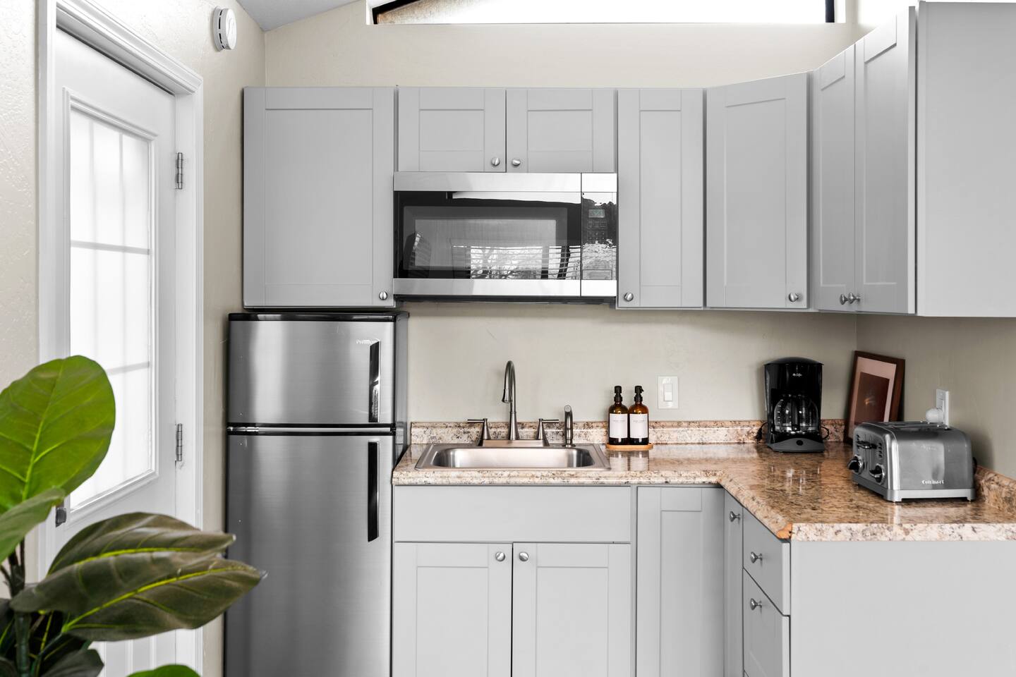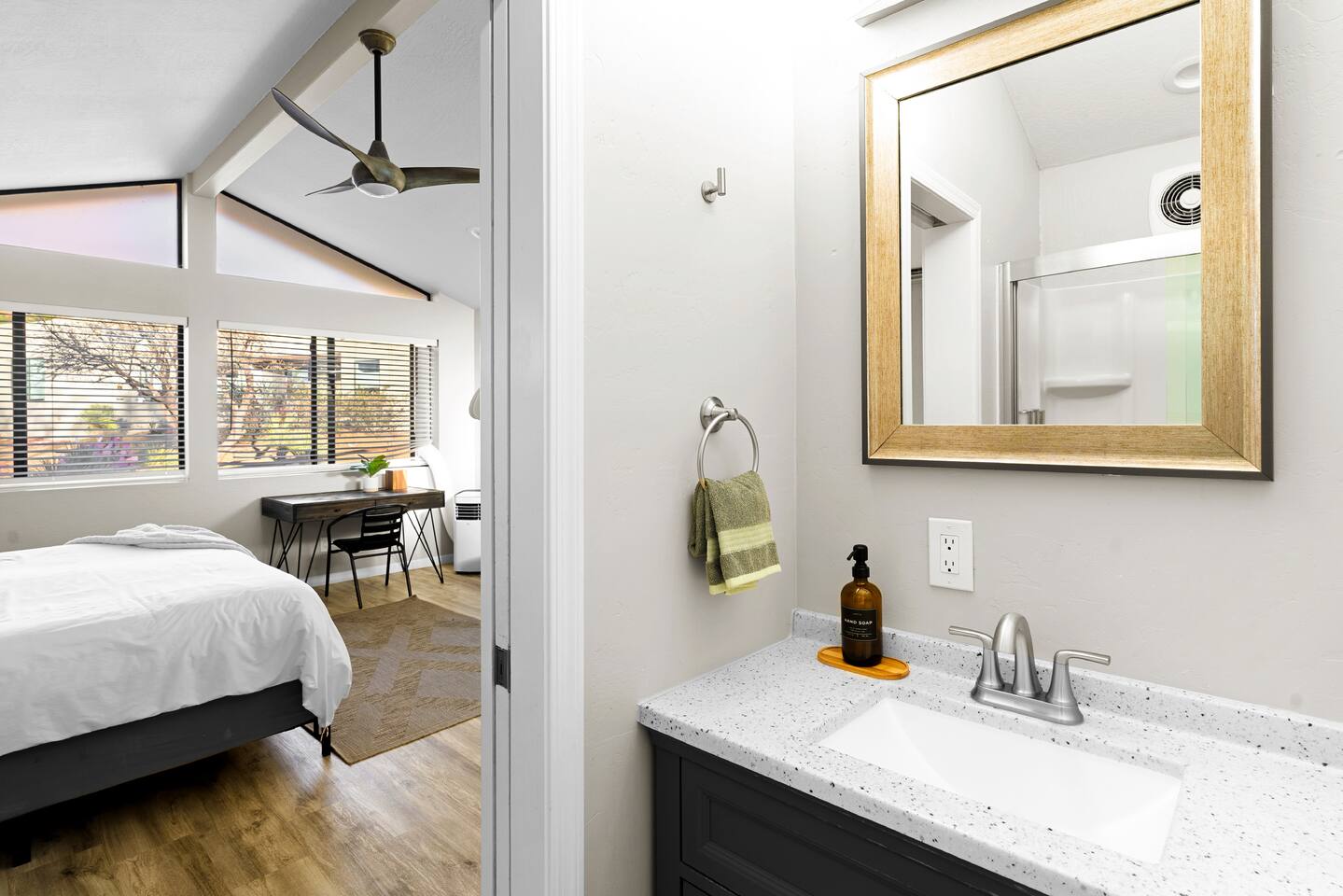 You will have private access to the entire main house, the Casita (one bed/one bath/kitchenette), the entire yard and propane fire pit area, the side patio dining area, and the pool.