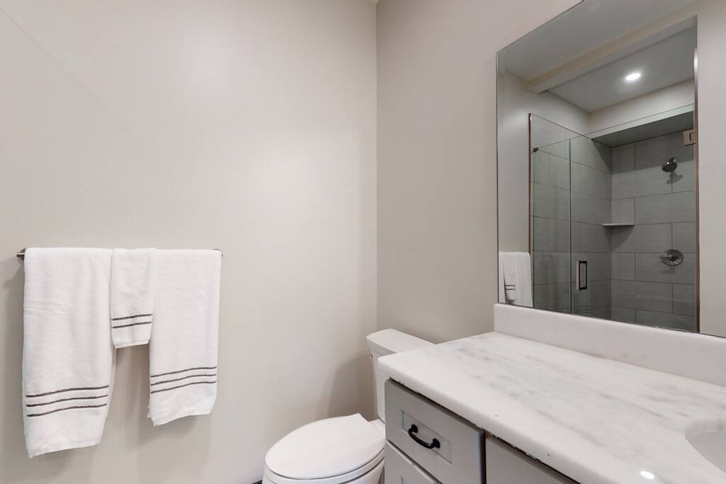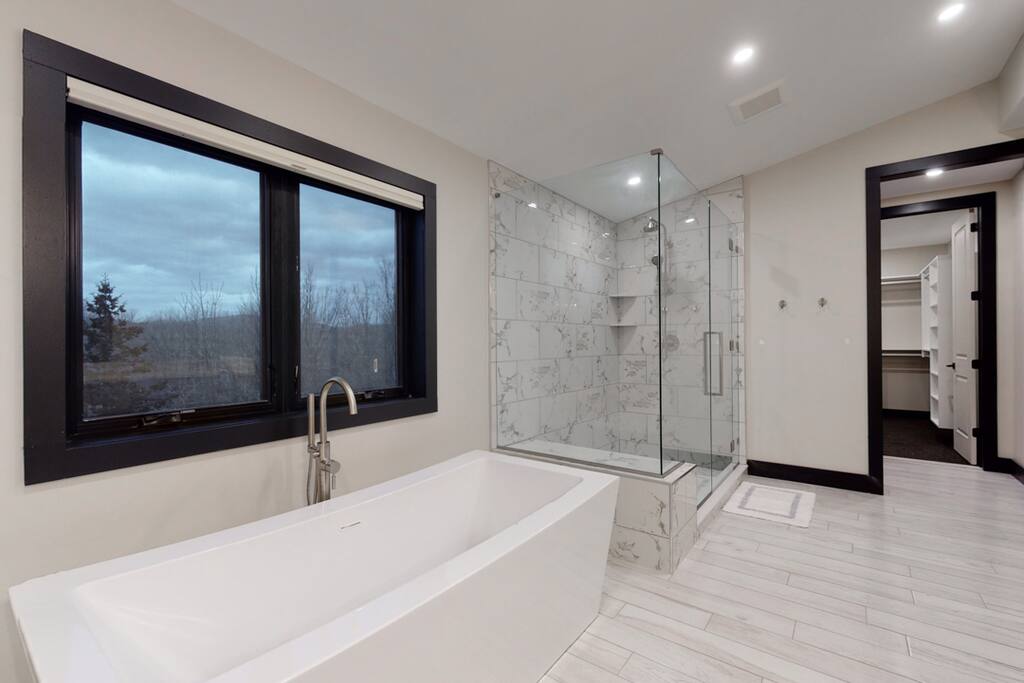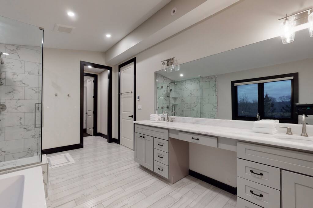 Unit 2 is 3600 sq ft consisting of 5 bedrooms and 5 1/2 baths, directly across from Windham Mountain! Every bedroom has its own bathroom (4 of which are true en suite) so everyone will have their own private space. Large living space is great for plenty of family and friends. Skiing and the adventure park are all within walking distance. When it warms up you can mountain bike or head 1 mile down the road to Windham Country Club. Or just sit back and enjoy mountain views from 1000 sq ft of decks!